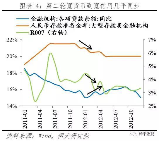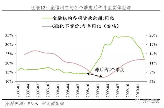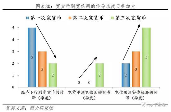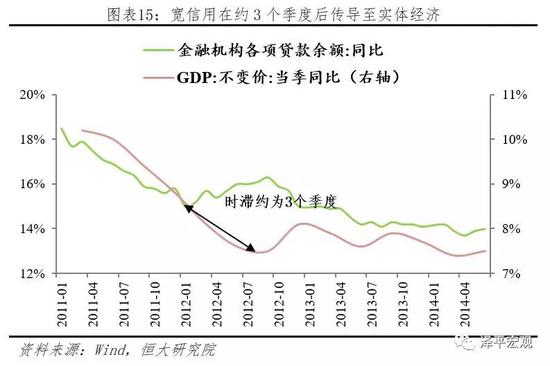 (3)宽信用到实体经济的传导速度逐渐变慢,第一轮约为2个季度,第二轮约为3个季度,第三轮约为5个季度。