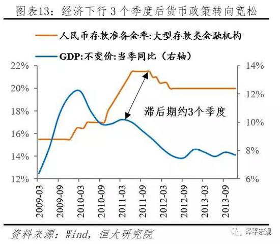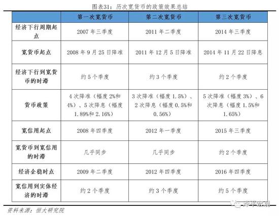 (1)货币政策的反应越来越及时,从经济开始下行到宽货币的时滞逐渐缩短,第一轮是5个季度,第二轮是3个季度,第三轮是2个季度。