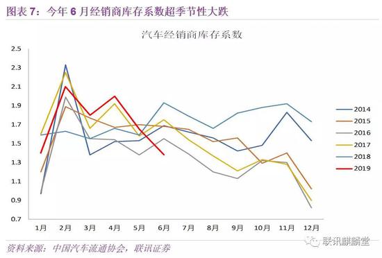 2019年7月1日开始执行国六标准的地区,国五标准的轻型汽车不得再销售和上牌。为了清理国五汽车库存,经销商加大了促销力度,6月乘联会狭义乘用车销量环比11.6%,大幅高于2011年-2018年同期的均值-2.9%。