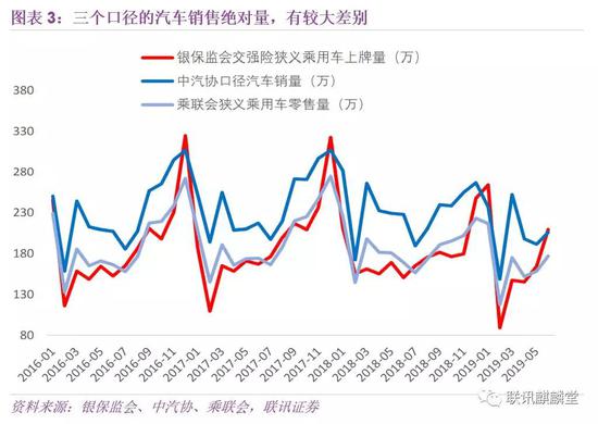 由于统计范围、统计环节不一样,近年乘联会、中汽协、银保监会口径的汽车销售绝对量,有较大差别。
