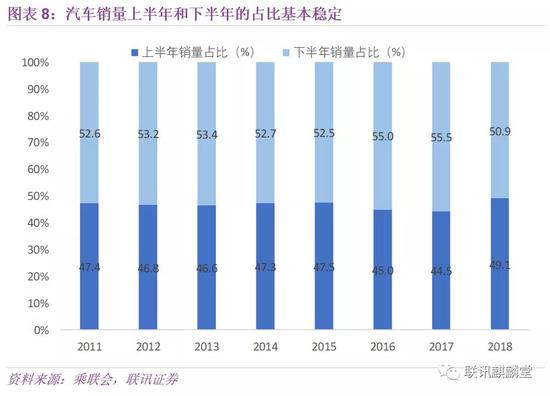相对而言,乘联会狭义乘用车的零售量具有季节性特点,便于用历史数据判断下半年的销售情况,因此汽车销售以它为基准。