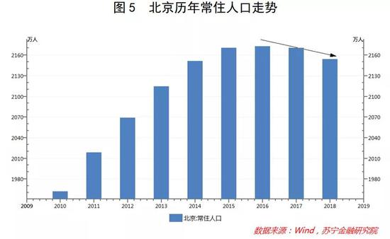 近几年,受房价房租高企、交通拥堵、空气质量打折等负面因素的影响,叠加有关部门的政策调控,很多一二线城市的外来常住人口正在减少,不少人喊出了“逃离北上广”的口号。典型如北京,自2017年起,其常住人口规模已连续两年呈收缩态势(参见图5)。