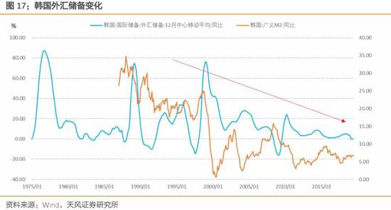 需要说明的是,作为资本流入的“小国”,韩国并未完全放弃准备金工具,韩国央行有权在货币快速扩张时期实行最高100%的边际准备金率,同时目前其平均准备金仍然处于3%-4%的水平,仍然高于美欧日等国。1996年开始韩国大幅降低法定准备金率固然有金融自由化、提高银行竞争力等考虑,但资本流入增速趋于缓和是其能够维持低准备金率的重要支撑。