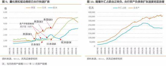 金融危机之后,发达国家央行大量投放基础货币。传统货币政策工具空间受限,美欧日央行纷纷推出非常规货币政策,由中央银行购买资产、向金融机构提供流动性支持等方式,主动投放大量基础货币,日本央行甚至直接以基础货币为操作目标。