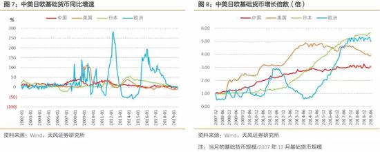 还需要关注基础货币的变化。金融危机之后,除了2011年前后增长较快以外,随着外储流入减少,中国的基础货币增速整体维持在比较低的水平;与此同时,美欧日三大经济体的基础货币规模都曾经出现超高速的增长。