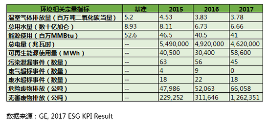 表4. 通用电气环境相关定量指标(2017年)