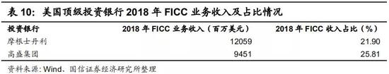 国外投行FICC业务发展已较为成熟。例如摩根士丹利以高净值客户与机构客户并重,2018年其FICC对公司收入贡献比例为21.90%,其中近90%来自交易类业务,包括公司作为对手方向客户销售产品或做市以及公司承担风险敞口投资的盈利或损失。高盛重视机构客户,其为机构客户提供的做市、产品服务销售等服务涵盖FICC与Equity两大方向,2018年FICC对高盛收入贡献比例为25.81%,而FICC收入的80%来自做市。