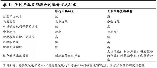 和传统产业相比,新兴产业更加需要通过资本市场进行直接融资。在过去的时代背景下,我国经济增长依靠基建、重工业以及房地产等粗放型产业,以及为这些产业配套的传统制造业,而彼时我国以大中型银行为主导的金融供给具有风险偏好低、重抵押物、风险识别能力弱等特点,有效支持了以传统产业为主的经济结构,满足了实体经济融资需求。而新兴产业不同于传统产业,通常发展时间较短,规模有限,内源融资不足,在前期需要大量的资本投入,经营具有高风险性。一方面,无形资产占比较大,在缺乏足够抵押或担保的情况下难以获得银行大量的信贷支持;另一方面,以往核准制的严格要求导致新兴产业难以在股票市场获得融资。此外,我国企业发债有严格的限制,很多属于新兴产业的公司尚未达到企业发债的标准,很难通过债券融资获得相应的资金支持。