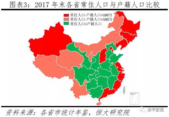 二是通过与常住人口的比较。常住人口大幅超过户籍人口,反映人口总体净流入,当前主要是东南沿海及京津地区;而常住人口小于户籍人口,反映人口总体净流出,主要是川渝贵、湘鄂赣皖桂、冀豫、陕甘等中西部省份。但需注意,人口总体净流入流出与边际净流入流出存在差别,后者依据近期变化判断。