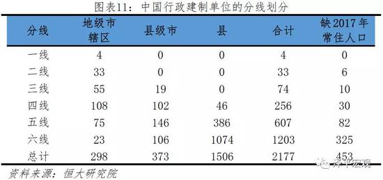我们在《中国人口大迁移》中将当前337个地级及以上行政单位划分为一二三四线城市。为更准确把握人口流动,本文以地级以上城市市辖区、县、县级市为基本单元,把中国内地2850个县级行政单位(不含福建省金门县)进一步细分为2177个地区,并依据GDP、政治地位、常住人口等因素划分为一二三四五六线城市。由于重庆市辖区范围太大,我们将其特殊处理为主城九区和非主城九区市辖区两部分,这使得地级及以上城市市辖区增加1个至298个。