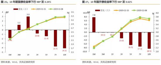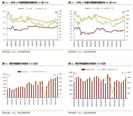 我们可以观察到:3个月及以上国债和中短期票据利率从10月也开始上升,而1个月存单利率、国债利率和中短期票据利率都出现了下行波动。说明和结构与季节性因素有关。