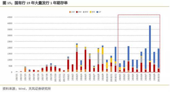 与国有大行对比,股份行19年同样大量发行1年期存单,只是变化没有大行那么突出。