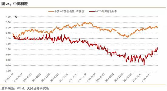 与低增长、低通胀和高债务环境一致的,是全球稳定的低利率环境。我们预计2020年全球经济周期将继续向下,国内外利差空间将进一步打开。从这一角度看,海外环境给国内货币政策操作留下充足空间。