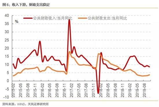 从一般预算的角度来看,今年的主要特征是财政支出同比增速在相对企稳,而收入增速在持续下滑。