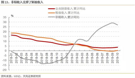 由于减税,今年税收收入大幅下降,今年财政收入还能保持正增长,主要依靠非税收入增加,这里面主要是国有企业的经营收入。