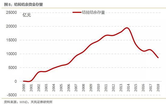 2012年之前,财政存量资金主要来源于地方财政的结转结余资金,2013年后,结转结余资金开始被消耗,主要是依靠政府性基金预算调入。
