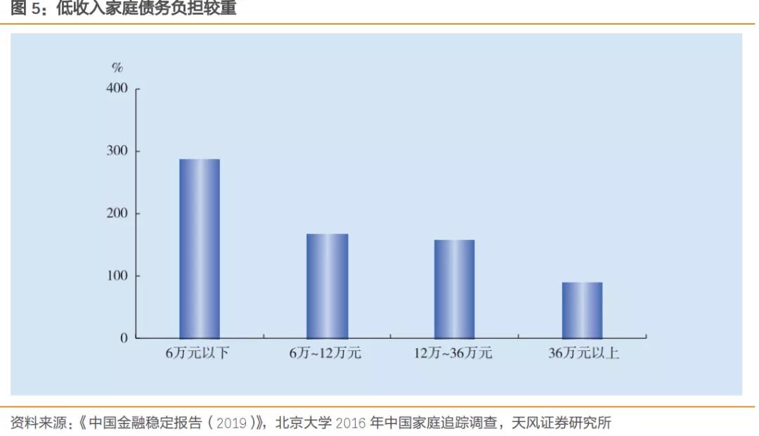 央行关注低收入家庭债务负担过重的问题。根据北京大学开展的2016年中国家庭追踪调查,从债务收入比来看,低收入家庭的债务负担整体重于高收入家庭。