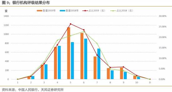 分机构类型来看,大型银行评级相对稳健,均在7级以内;高风险机构主要集中在农村中小金融机构。
