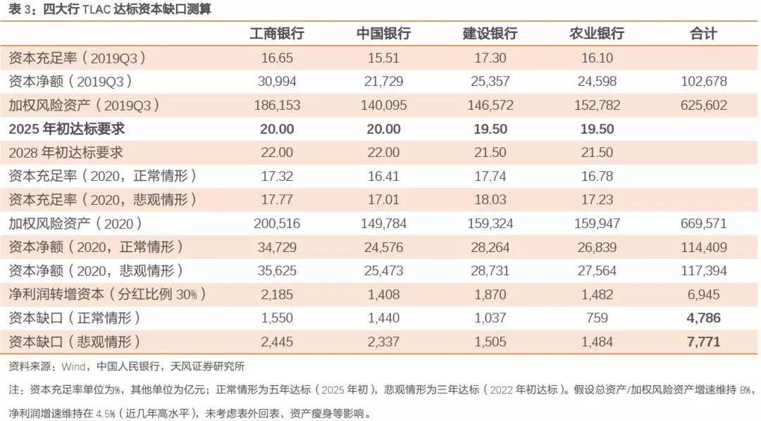 四大行满足TLAC要求难度较大,存在较大的资本缺口,大行补资本压力也可能会对信用扩张产生压力。
