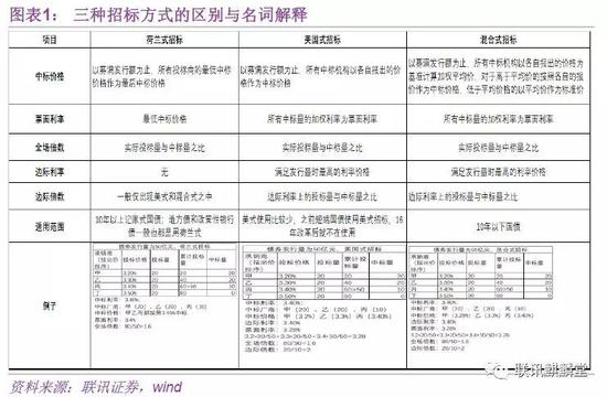 投标是利率债品种(除地方政府债)的主要发行方式(详见表格1),一般会形成四个数据:全场倍数、边际倍数、中标利率(加权)和边际利率(荷兰式招标规则除外,它没有边际倍数的说法)。