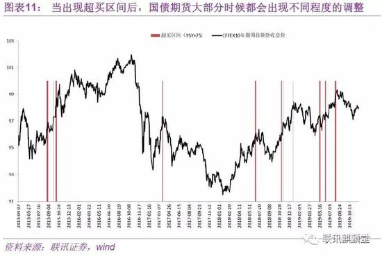 按照这种计算方法和规则,我们对10年期国债期货上市以来的数据进行了回溯,发现有46次出现了超买的信号,39次出现了超卖的信号。