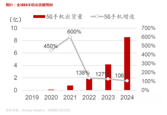 图21:全球5G手机出货量预测