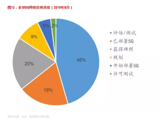 图13:全球5G网络投资进度(2019年8月)