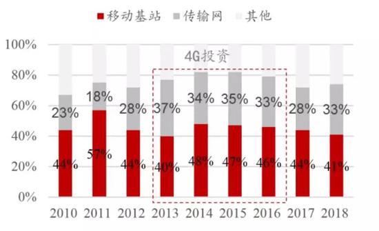 通信行业资本开支具有周期性特点。在运营商3G、4G时代,资本开支都呈现出周期性变化,从牌照发放前一年的小规模建设到牌照发放后三年的大规模建设,主要建设期为四年。3G牌照发放于2009年1月7日,运营商在2008年提前开始进行3G网络建设,2008年运营商资本开支呈现复苏迹象,2009-2011年是3G网络的主要投资期。4G牌照发放于2013年12月4日,运营商在2013年开始进行4G网络建设,2014-2016年是4G网络的主要投资期。5G牌照发放于2019年6月6日,2020-2022年将是5G网络的主要投资期。