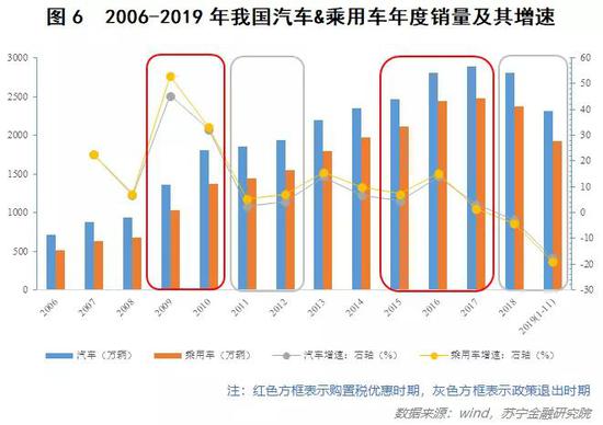 受政策调整影响,汽车市场的销量随之变化(参见图6),尤其是2017年下半年出现了购车热潮提前的现象,对2018年的整体用车需求形成了透支,同时也因基数较高而导致后续增速放缓。某种意义上,2018-2019两年可以算作是前期政策优惠的“还债期”,再叠加2019年 “国六”切换带来的持币观望情绪以及消费者对刺激政策再次出台的预期,都会对终端需求造成一定的负面影响。