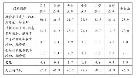 2018年开始,大规模的减税降费已经开始实施,尤其针对制造业和中小企业的减税,并取得了一定的成效,相信这一数字更新之后能见到明显的效果。但在融资费率方面则仍然不容乐观,财科院的降成本报告中对企业融资成本进行了问卷调查,结果显示出了很多结构性问题:
