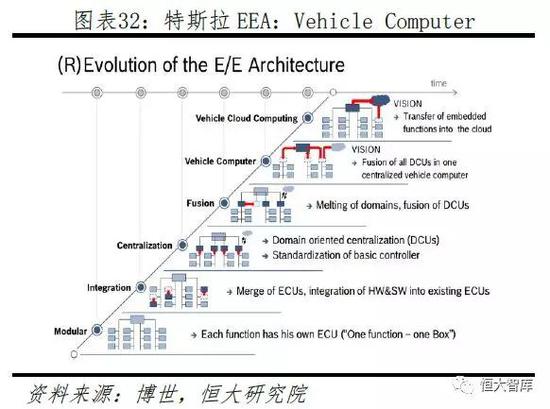 一、软硬件解耦、算力集中化。可以真正地实现硬件标准化和软件开发重复利用,既实现供应商可替代,也可以大大缩短软件迭代周期,同时为日后第三方软件开发扫清了障碍。车辆将成为移动的智能终端,同时大量计算工作可以集中至车载中央处理器甚至云端,减少了内部冗余同时车联网协同成为可能。