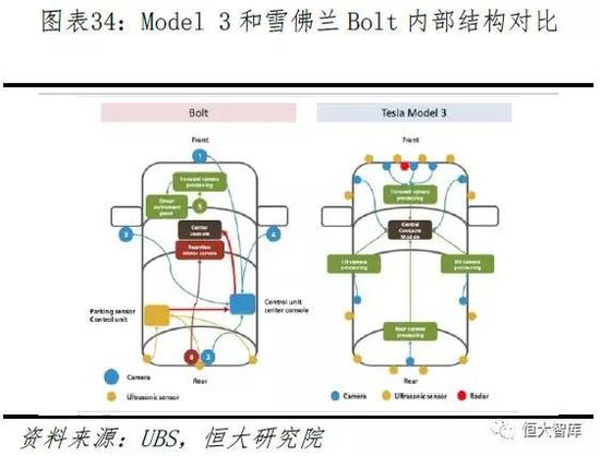 三、特斯拉自研自动驾驶芯片来满足完全无人驾驶算力需求。根据特斯拉4月23日自动驾驶日披露的信息,历时3年秘密研发,特斯拉已经完成车载AI芯片的设计生产(由三星代工),SOC算力超过了应用于AP2.0的英伟达Drive PX2,并已经实现装车。从原理来看,无论哪条自动驾驶技术路径,对海量数据的处理和学习能力都至关重要,因此,汽车AI的实现需要底层软件到硬件的全方位变革。此前,自动驾驶芯片基本被英伟达和Mobileye(已被Intel收购)两大巨头垄断,此次自研车载芯片是特斯拉近几年来最重要的硬件创新,将使特斯拉成为唯一一家具有自动驾驶芯片研发设计能力的汽车制造商,进一步扩大在智能化和无人驾驶领域的领先优势。