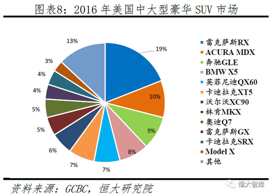 2015年第三季度,搭载鹰翼门豪华SUV Model X正式交付。相较Model S,Model X在性能上并没有太多的创新,两者的用户定位与价格也相仿,均属“Master Plan”第二阶段计划。Model X主要为满足需求更大的豪华SUV市场,并丰富产品线。较ModelS销量呈稳定趋势,ModelX依旧保持增长,目前全球总销量超12万辆,在美国大中型豪华SUV市场占有率与奔驰GLE、宝马X5等竞品接近。