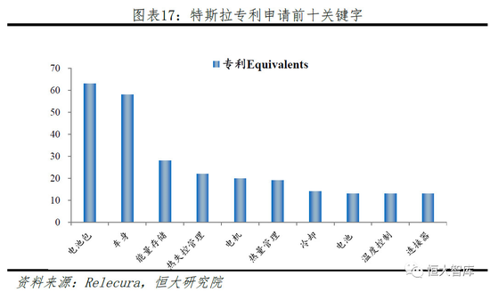 与传统车企相比,特斯拉在新能源汽车领域的专利数量并不算突出,例如丰田相关专利数超14000多件,约为特斯拉专利数量的50倍。从专利申请前十关键字来看,“电池”“热量管理”“冷却”等是特斯拉主攻目标。通过调动有限资源集中攻坚,特斯拉希望在三电系统领域与传统车企形成差异化竞争。