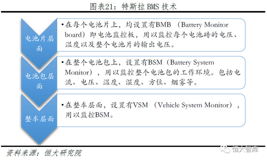 二、串并联组合、分层管理模式优化模组结构,提高电池充放电能力。特斯拉电池采用特有的串并联方式,按照“单体电池-brick-sheet-pack”顺序进行分层管理。例如,特斯拉将Roadster电池系统的6831节电池分成不同的子单元(4个模组中2个为23Brick/module,另外2个为25Brick/module,即2*23*31+2*25*31)进行并联和串联,多组串联和平板的设计,极大增加电池铺设数量和使用效率,从而提高整车动力性能和续航里程。