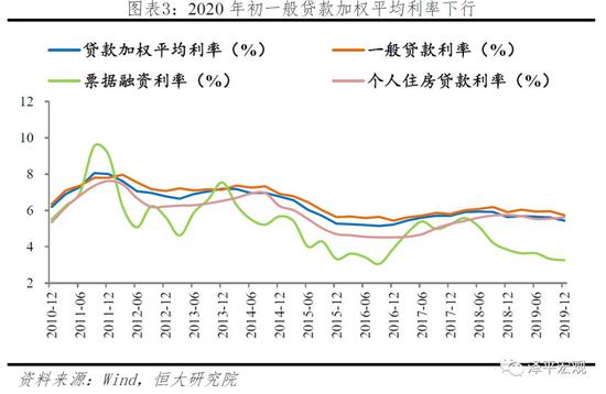 LPR改革后,OMO-MLF-LPR-贷款利率,传导效率提高,一般贷款利率下行明显。本次存量换锚有利于进一步实现利率联动,降低实体经济融资成本。2019年8月LPR改革至今,逆回购利率、MLF利率分别累计下调15BP,1年期、5年期LPR报价分别累计下调26BP、10BP。2019年12月,金融机构贷款加权平均利率为5.44%,较9月末下降18BP,其中一般贷款、票据融资、个人住房贷款利率分别为5.74%、3.26%、5.62%,较9月末分别下行22BP、下行7BP、上行7BP,一般贷款下行幅度大,超过同期LPR调降幅度。此前,LPR调降主要带动新增贷款利率下降,本次央行存量贷款换锚实现MLF与存量贷款利率的联动,未来MLF降息和LPR加点降低将使所有的贷款合约受益,进一步提升利率传导机制效率。货币政策逆周期调节能力明显提升,实体融资成本有望继续下降,企业利息费用减少将增厚企业利润,助力投资回暖。