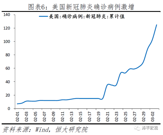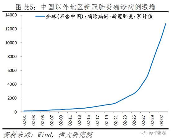 中国疫情得到初步控制,但海外疫情快速蔓延。中国现存确诊病例从2月中旬开始以每天减少3000例左右的速度趋势性下降,但疫情全球大流行,现已扩散至55个国家和地区。2月20日至3月3日,中国以外地区累计确诊病例由1101例激增至12777例,死亡218例。其中,美国累计确诊病例由15例激增至125例,死亡9例。世界卫生组织(WHO)总干事谭德塞于2月28日宣布将全球范围内新冠病毒传播风险和影响风险的评估提高到最高级别。