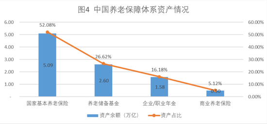 目前,我国养老保障体系主要为三大支柱:基本养老保险和养老储备基金(国家层面)、企业年金和职业年金(企业层面)、商业养老保险(个人层面)。