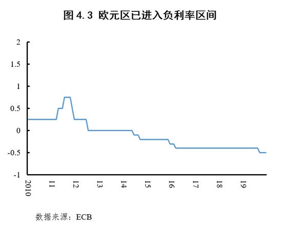 负利率环境下,欧元区货币政策空间极为有限。欧洲债务危机后,欧元区经济复苏乏力,2014年第二季度实际GDP增速下滑至0.8%,同时居民消费价格指数HICP长期处于低通胀区间,在2014年5月欧元区通胀率仅为0.5%,远低于2%的温和通胀目标。加之银行信贷下滑,欧洲央行实行负利率政策以此来进一步缓解融资环境,刺激新的信贷条款,从而加强欧元区的经济复苏势头,加速通货膨胀水平回归接近2%。经过多轮下调,目前欧元区隔夜存款利率仅为-0.5%,几无货币政策空间,如果继续下调利率,可能导致银行收入的大幅降低,反而削弱银行的放贷能力。2020年3月12日,欧央行宣布维持现有利率不变,并表示额外增加1200亿欧元资产购买计划,预计未来政策大概率会维持现有利率而进一步增大资产购买。