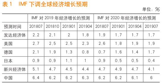 目前全球经济疲软,主要经济体增长放缓。中美贸易摩擦与英国“硬脱欧”相关的不确定性持续存在,地缘政治紧张局势升级。IMF对全球经济增长的预测逐步进行下行修正。对于发达经济体2019年的经济增长预测,从2018年第三季度的2.2%持续下调至2019年第三季度的1.9%,其中对德国经济增长预测的下行修正尤为明显,显示了悲观的预期。2020年的经济形势则更加充满不确定性,对美国2020年的经济增速预测在一年内从2.6%下降至1.9%,而新兴经济体下行风险更大。可见,全球经济从一致复苏转向同步衰退,是本轮负利率政策席卷全球的最主要背景。这也是继2008年国际金融危机和2010年欧债危机之后,第二次政策负利率的广泛实施,因此我们可以称之为“负利率PLUS”阶段。