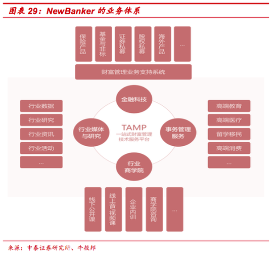 产品服务。1、高度集成的技术平台。能为财富顾问提供一系列高度自动化的流程处理,包括开立账户、构建资产组合、理财规划、账单寄送、投资报告、投资分析及客户行为跟踪等。2、个性化及规模化的咨询服务。为财富顾问提供全方面的支持,包括日常运营、商务管理、投资咨询等。3、综合化的投资平台。为投资顾问筛选了20家具有特色及专业性的第三方资产管理机构,此外公司还自有两家资产管理公司提供产品。公司有专业的投资顾问为财富顾问提供服务,通过技术平台管理资产组合,满足高净值客户和大众理财客户个性化的投资需求。