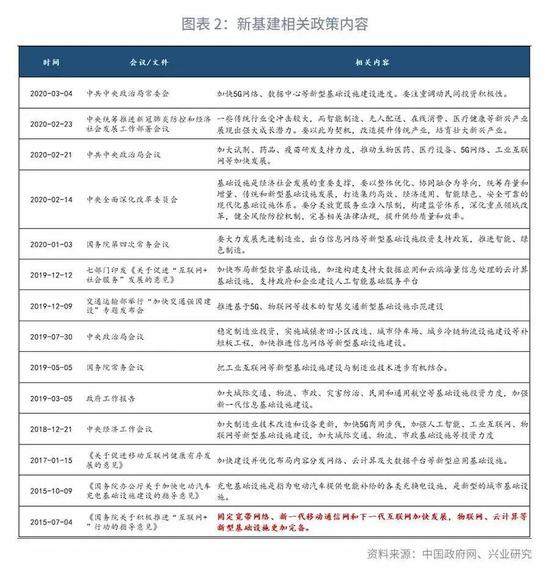 新基建的概念早在2015年就已经提出。随着技术、经济发展条件成熟和相应业态的蓬勃发展,2018年以来,新基建逐渐成为中央经济建设的重点。2020年以来,中央密集表态新基建一方面是此前政策方向的延续,另一方面也是对抗疫情冲击的现实选择。