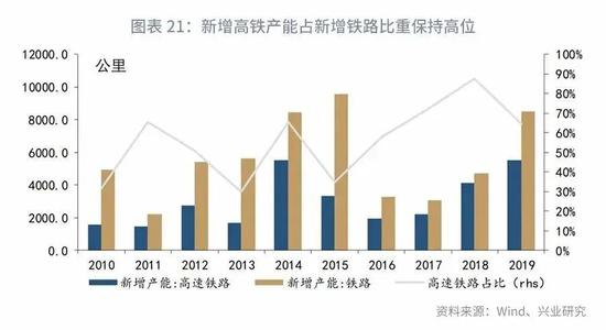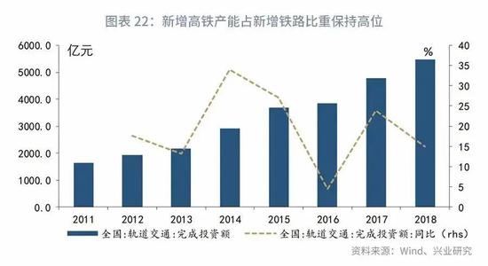城际高铁和城际轨交建设的重点围绕在“城际”,与我国近年来城市群建设政策导向相衔接,有助于加强区域经济发展,平衡区域内部产业结构。自2014年以来,我国铁路固定资产投资规模稳定在8000亿左右。近年来,高铁投资规模持续提升,高铁新增产能持续上升,预计未来高铁投资规模以每年5%左右增速增长。