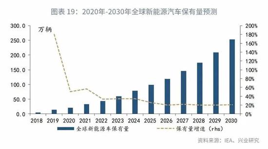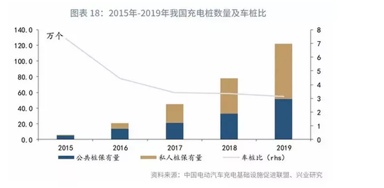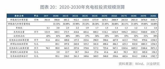 公共充电桩与私人充电桩的比例则大体保持在4:6水平,并随着新能源汽车消费的广化,逐渐转变为3:7。公共充电桩的造价在5万元/个,私人充电桩的造价则大概在2千元/个。测算得各年充电桩投资规模如下:
