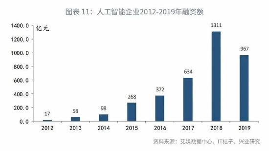 随着5G组网建设推进以及工业互联网平台不断完善,未来将有海量数据产生,可以为人工智能的深度学习提供大量的训练数据,有助于AI算法的持续升级。2012年以来,人工智能企业融资额持续提高。但是2019年,人工智能企业融资额出现首次下降,这与当前AI盈利难度较高、资本环境趋紧有关。