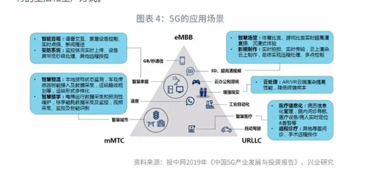 与传统基建相比,新基建有其独特的优势。第一,新基建有广阔的应用场景和较大的市场潜力,民间资本对于新基建有着更强的参与动力,可以通过更少的政府资金来撬动更大规模的民间投资。以5G为例,5G网络有着高速率、低时延和泛连接的特点,包括三个方面的应用场景: