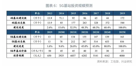 5G建设的第一步毫无疑问是5G基站大规模建设组网,这也是未来一段时间新型基础设施建设投资的重中之重。5G由于频率较高,覆盖范围较小,因此需要建设更多的宏基站以保证网络覆盖。而由于技术等原因,5G单个基站的造价明显高于4G基站。