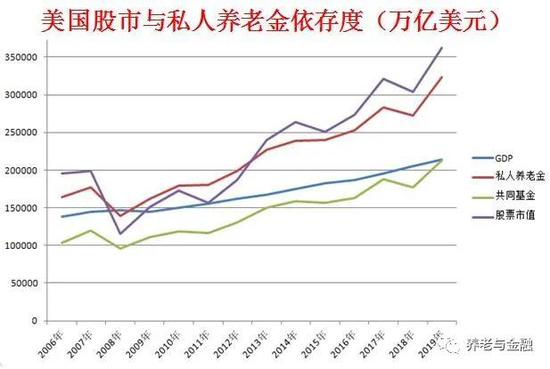 2019年,美国私人养老金与美股总市值首次双双突破30万亿美元,公募基金净值首次突破20万亿美元。