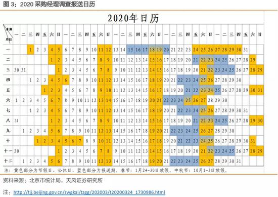 如果遇到节假日,数据报送时间亦会相应调整。例如今年1月数据报送截至20日,因而1月50%的PMI指数并未体现新冠疫情的影响。
