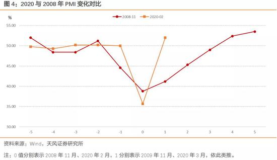 如果直观对比2008年金融危机期间PMI走势,那么本次PMI反弹力度并不小,而且已回到荣枯线之上。